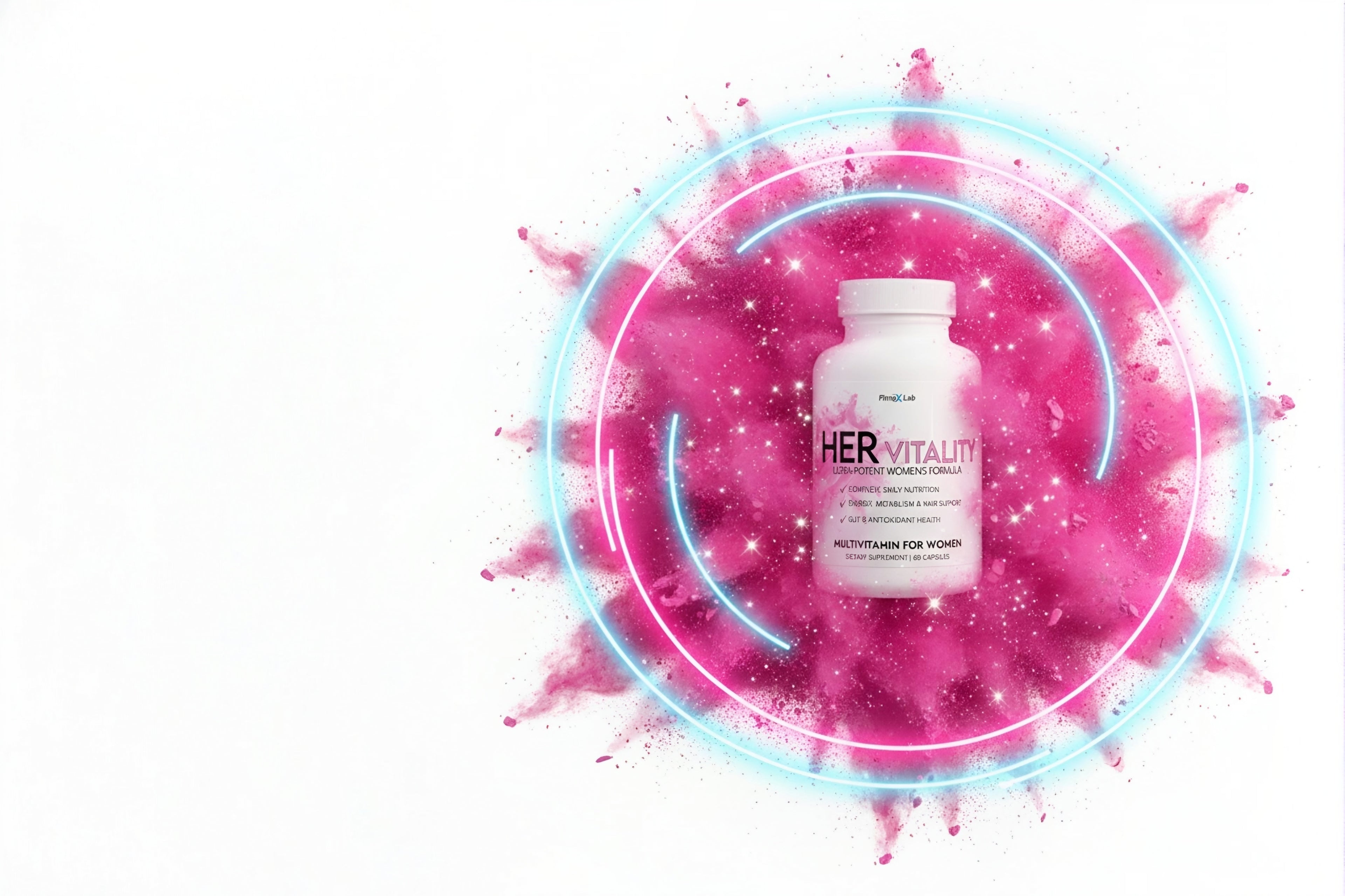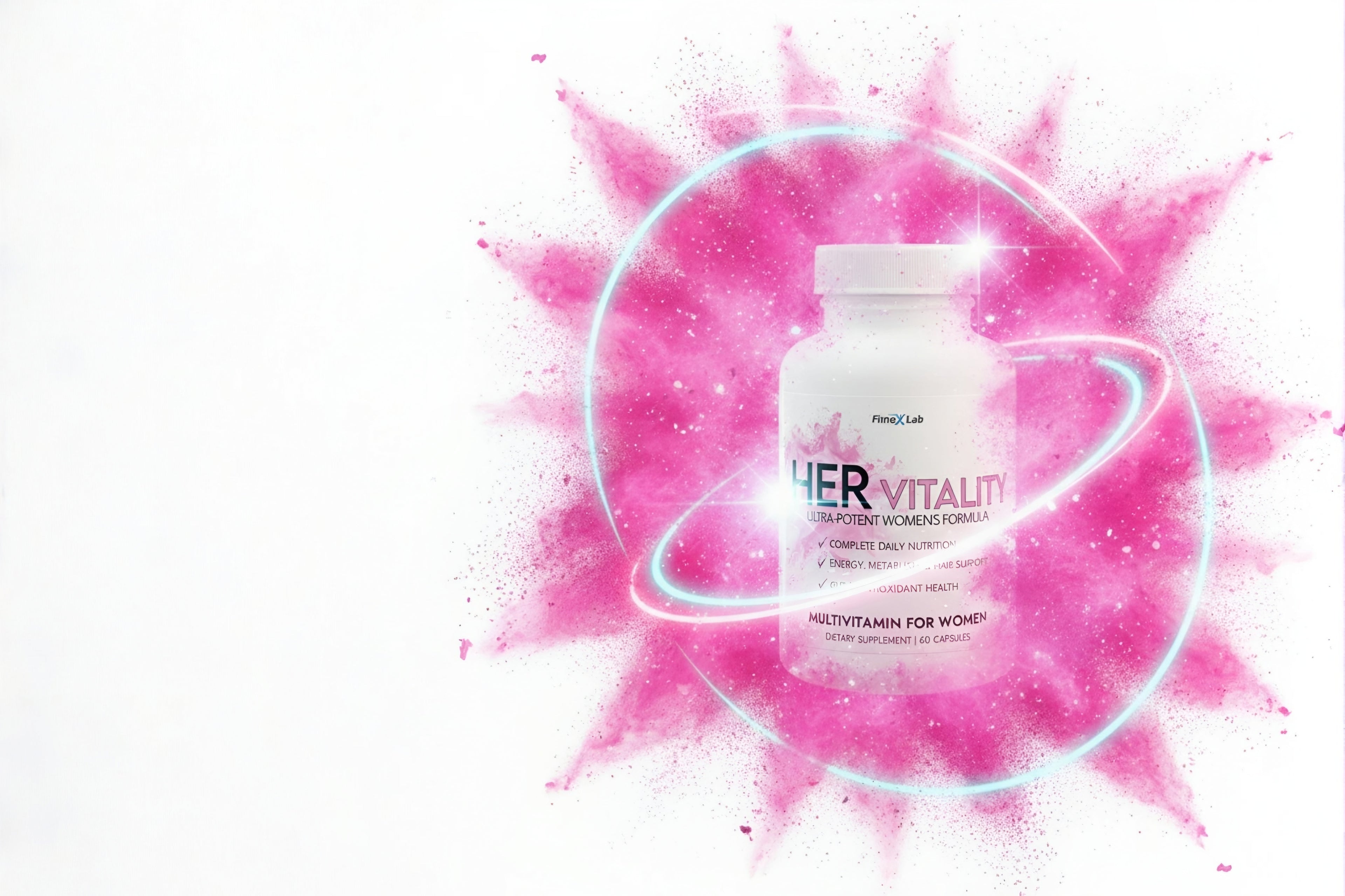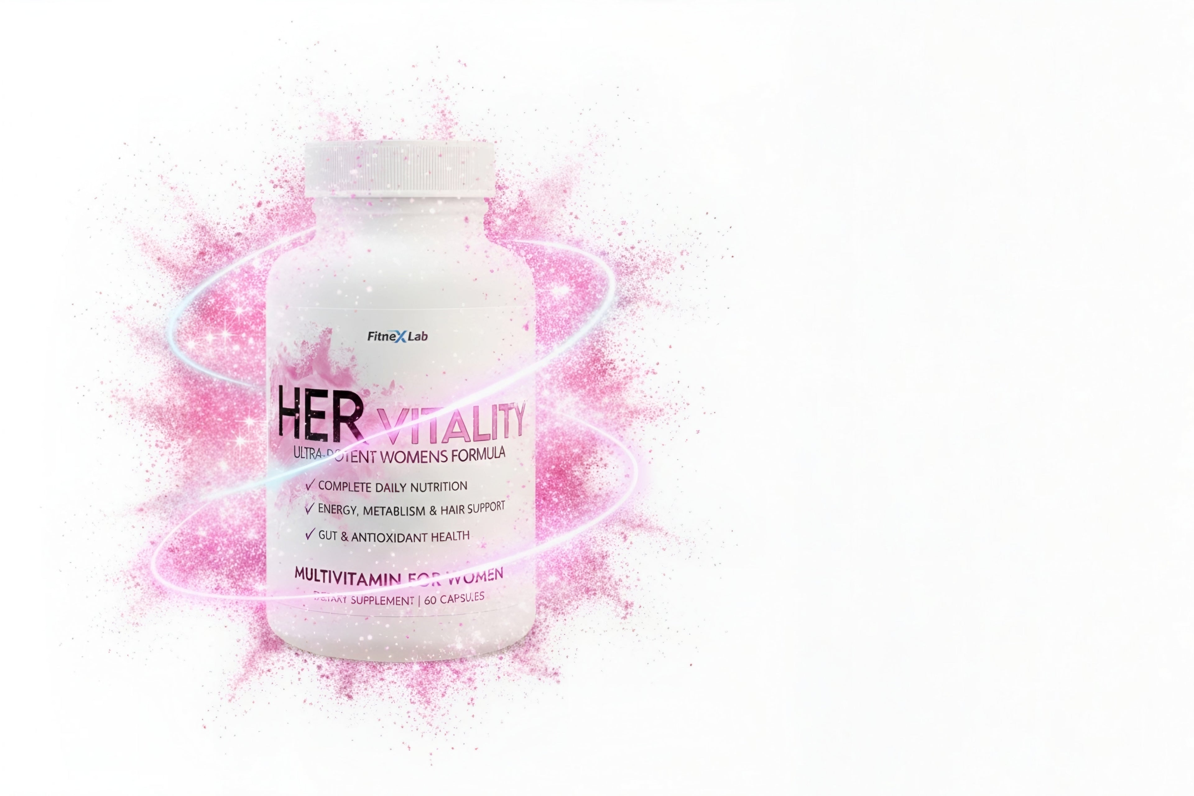 Introducing HER VITALITY™ by FitneX Lab. This is not just a multivitamin; it's a foundational formula, scientifically engineered to support every aspect of an active woman's health. It provides a full spectrum of vitamins and minerals, enhanced with a unique blend of herbs like Wild Yam, Red Clover, and Cranberry, specifically designed for female wellness.